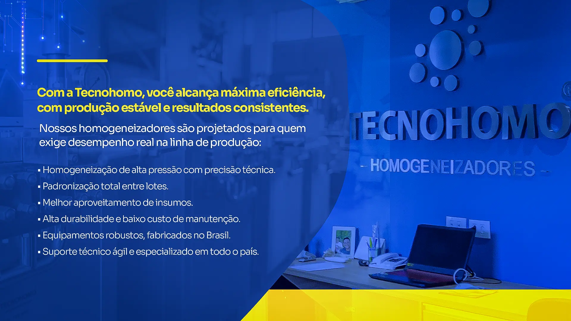 Fundada em dezembro de 2005, a Tecnohomo Indústria e Comércio de Bombas Ltda. é referência nacional no desenvolvimento, fabricação, manutenção e reforma de homogeneizadores de alta pressão, com aplicação em diversos segmentos industriais.